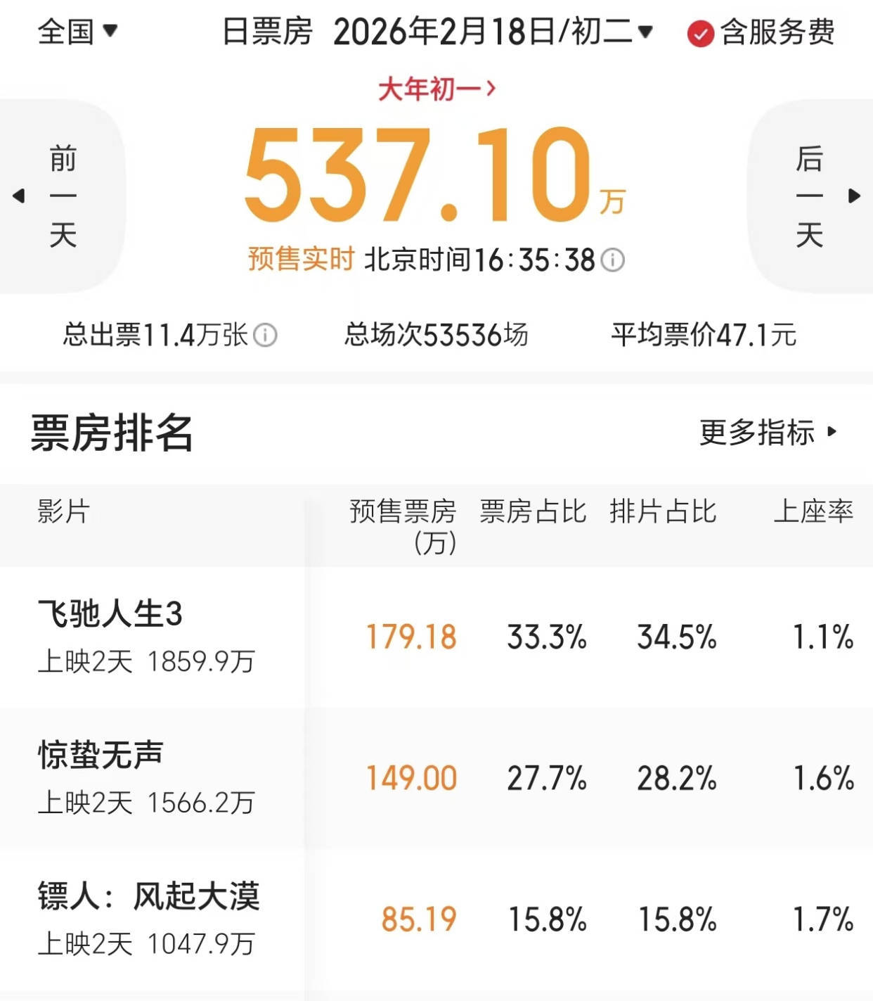毕竟依照目前的各种表现来看,《飞驰人生3》都可以说是遥遥领先于春节档的其它电影作品,预售第一、想看人数第一、排片量也是第一。