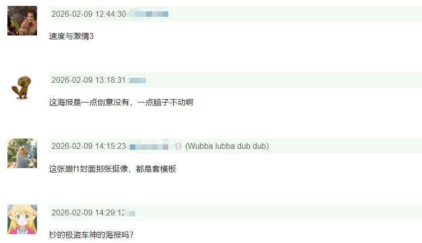 因此不少观众都评论说:“《飞驰人生3》的海报一点创意都没有,感觉它就是在抄袭好莱坞的《F1:狂飙飞车》”。
