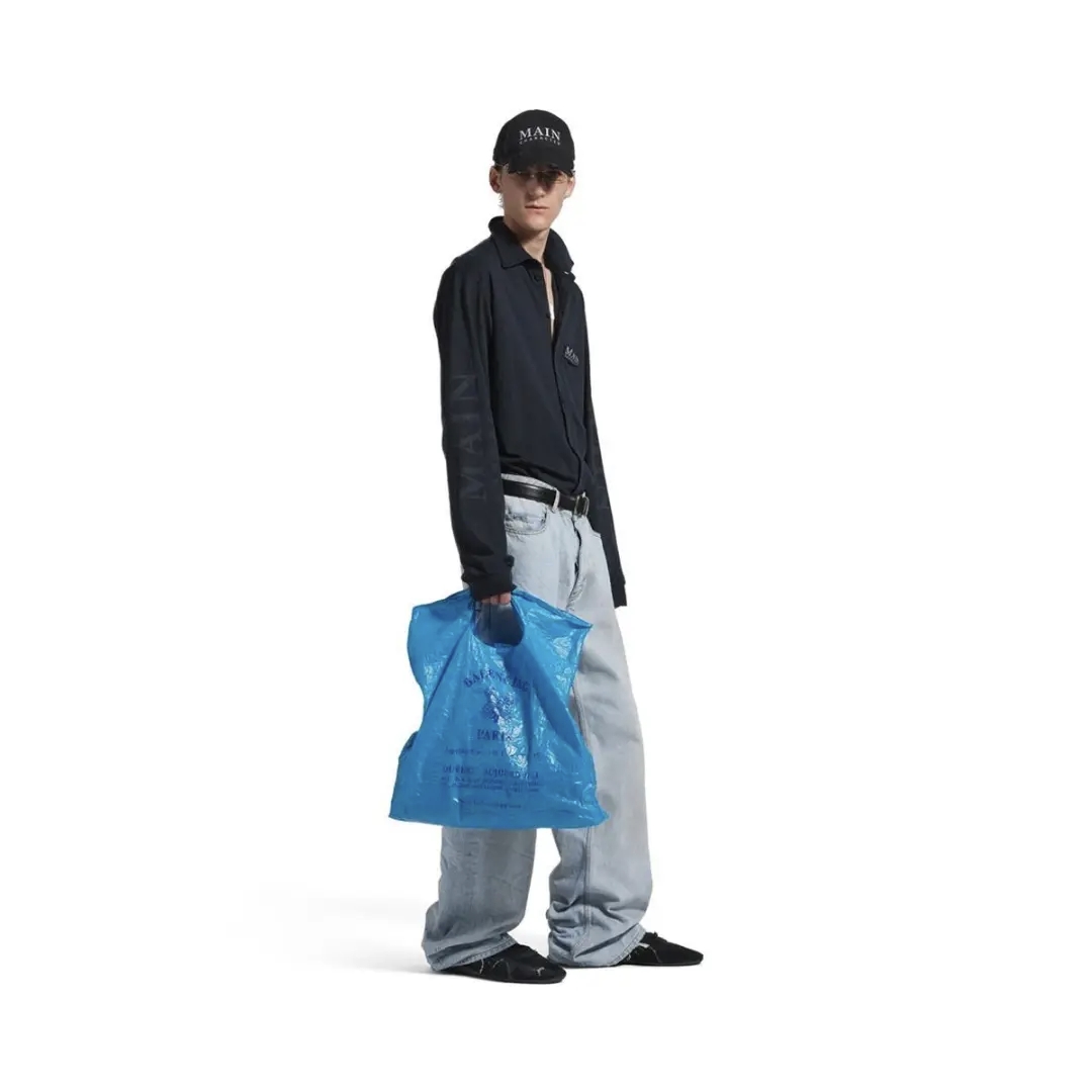 这已是巴黎世家今年起第二次“跟塑料袋过不去”了。2022年8月,该品牌推出了一款名为“Trash Pouch”的手提包,选用了高端的小牛皮材质,色彩选择上则提供了黑白蓝黄四种颜色,不仅颜色与日常生活中的垃圾袋相似,款式更是别无二致。